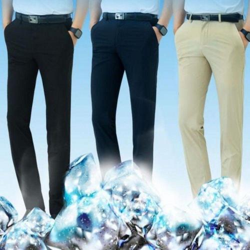남성 여름 슬랙스 링클프리 냉감 아이스 남성 쿨링 팬츠 스판 속건성 탄력적 기능성 실크 방지 주름