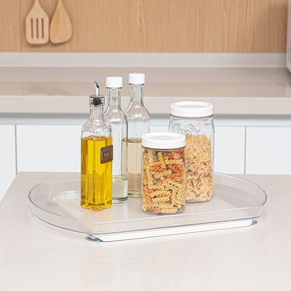 NEW 높은 회전 투명 트레이 높아서 안정적! 360도 회전 양념통 다용도 냉장고 수납정리