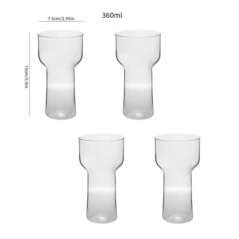 TEMU 4개 세트 키 큰 안경 - 토치 모양 | 고강도 보로실리케이트 유리 소재 | 차가운 음료 및 뜨거운 음료에 강함 | 패셔너블 아이스 커피, 칵테일, 주스, 우유 컵 | 다양한 행사용, 파티 글라스, 아름다운 맥주 및 스피릿 글라스 360ml|텀블러