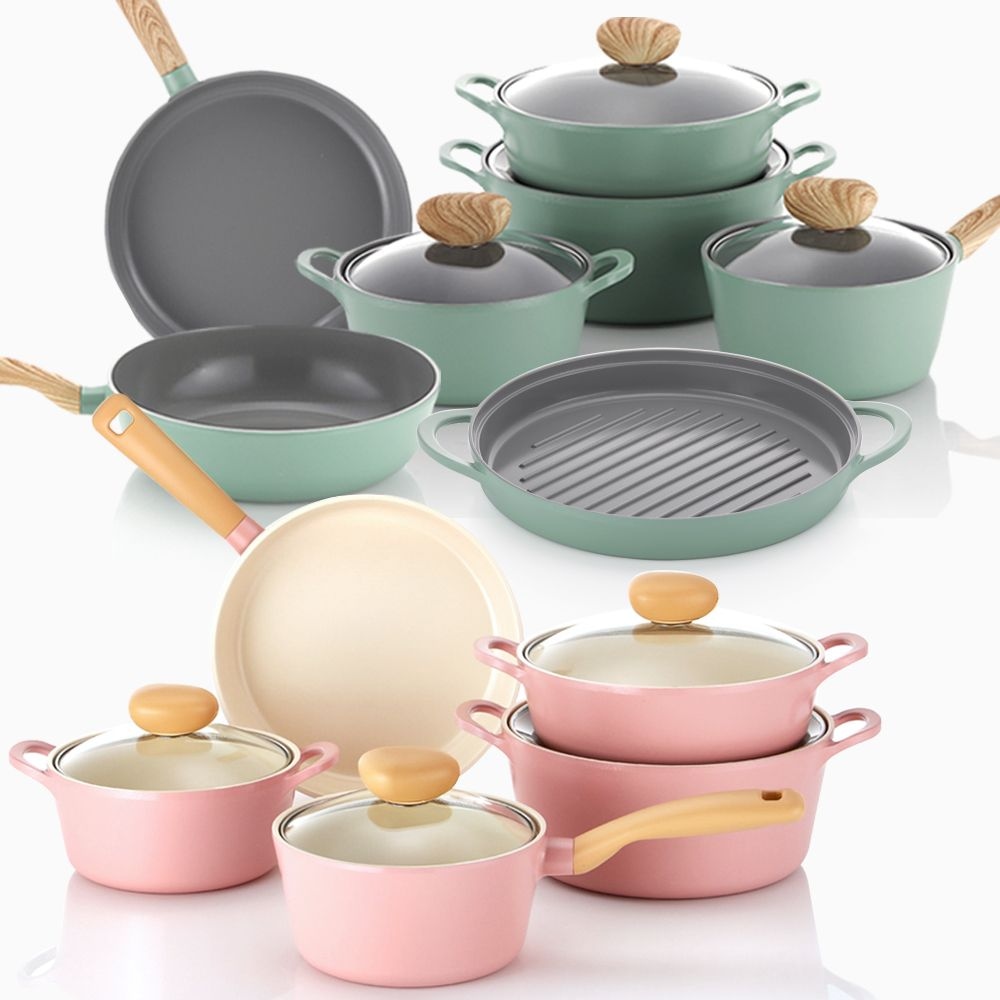 레트로 IH 인덕션냄비 7종 냄비세트+후라이팬 (핑크)