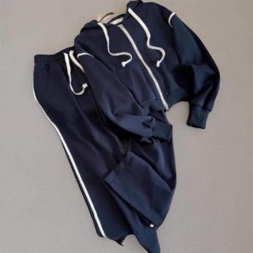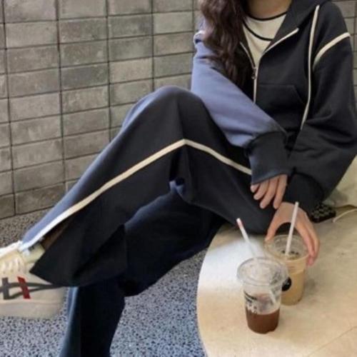 [옷자락]여성 캐주얼 네이비 후드 집업 트임 바지 세트