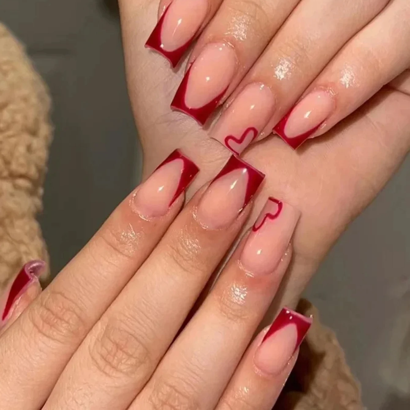 젤리 접착제 1개와 네일 파일 1개가 포함된 짧은 사각형 프렌치 하트 단순 손톱 24개