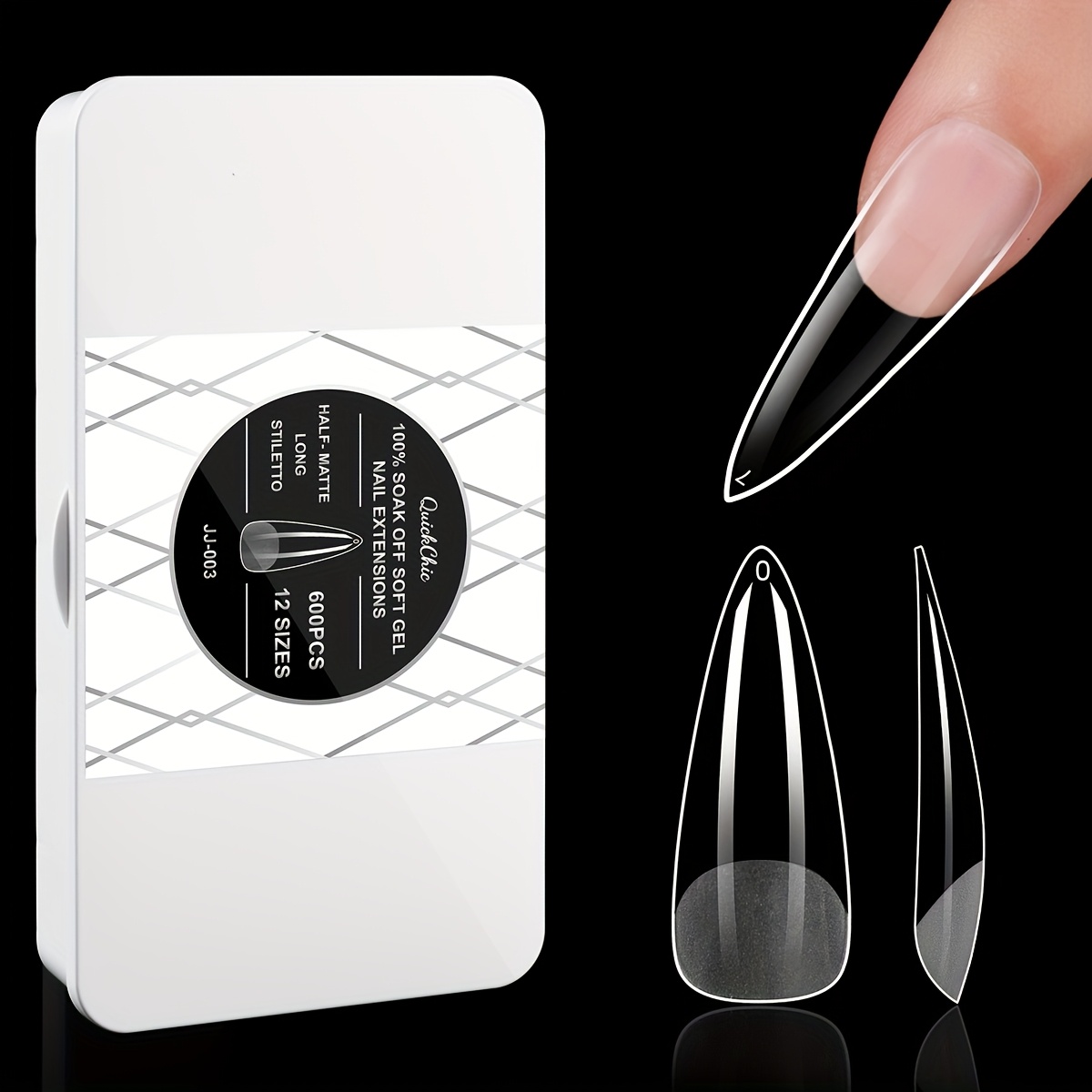 TEMU Quickchic 중간 알몸 모양 풀 커버 아크릴 투명 네일 프레스온 600개입 (하프 매트 엔드, 엑스트라 롱 코핀 모양 네일 팁용 소프트 젤 클리어 15가지 사이즈)