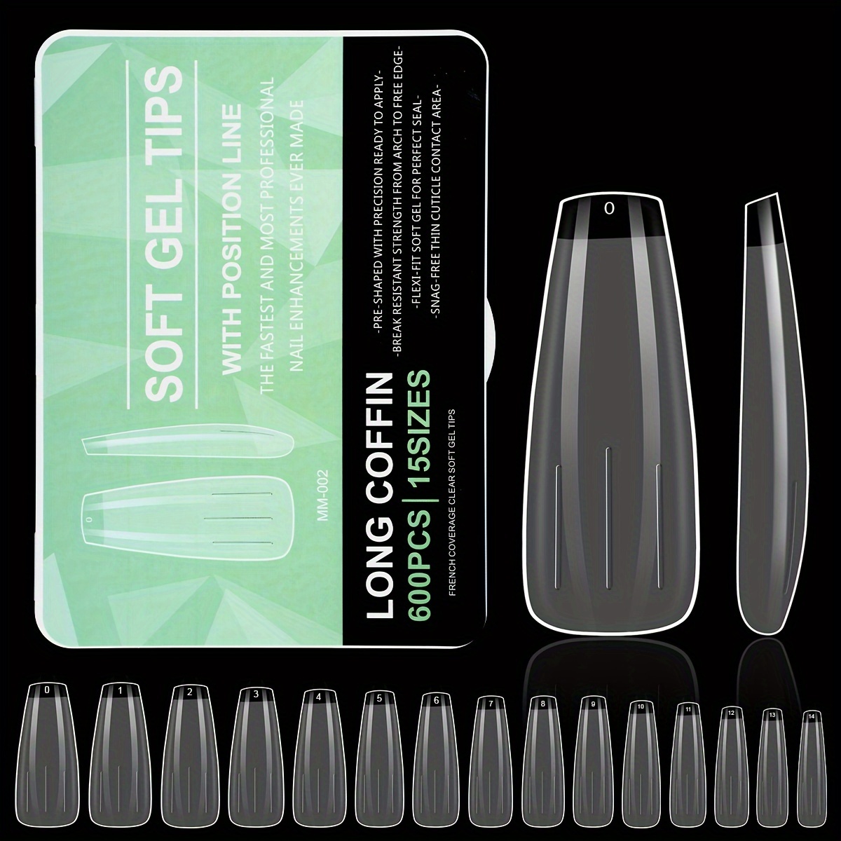 TEMU 500/550/600개 퀵치크 소프트 젤 네일 팁 풀 커버 클리어 아크릴 인조 손톱 - 아몬드, 스틸레토, 코핀, 스퀘어, 미디엄 오발, 젤 익스텐션 편안한 착용 매니큐어 용품 데이트 뷰티 데코