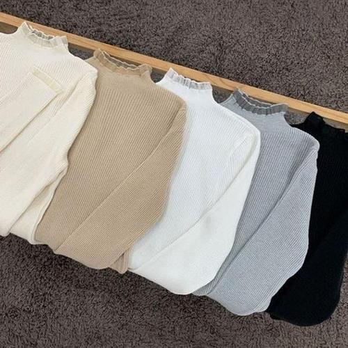 [셀러허브_여성트랜드패션]Rly 여성 라이트 하이넥 플레어핏 긴팔 니트