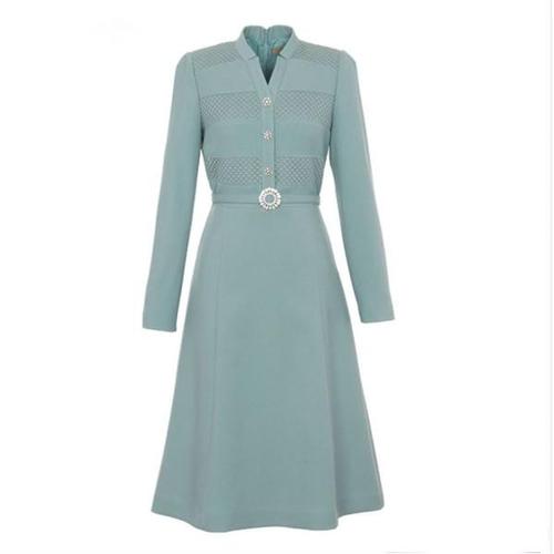 샵앤) 앞단추 카라넥 플레어 롱 원피스 CAT-WDR-3827-딥그린