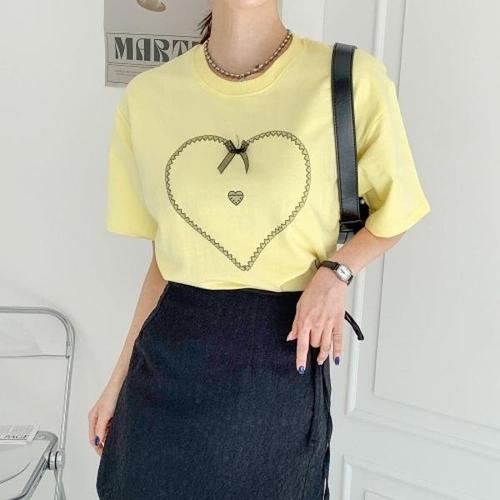 [브이와이][VY] 여자 리본티 귀여운 노랑 하트티 수학여행코디 티셔츠_16569956_588847