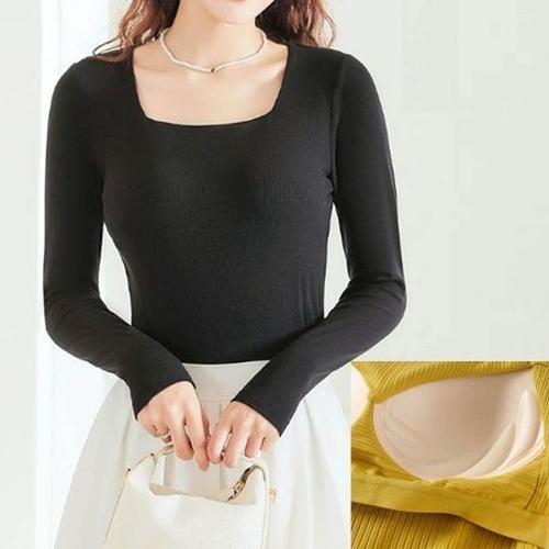 [엄지척]노브라 여성가을티셔츠 여성맨투맨티 스퀘어넥 슬림핏_19601653_667501