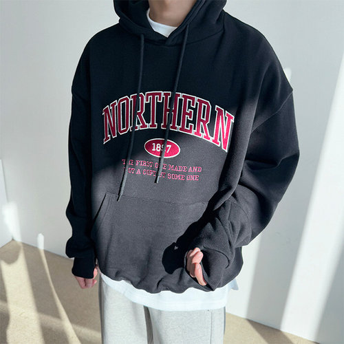 제로스샵 / 노스 1897 레터링 자수 기모 오버핏 후드티