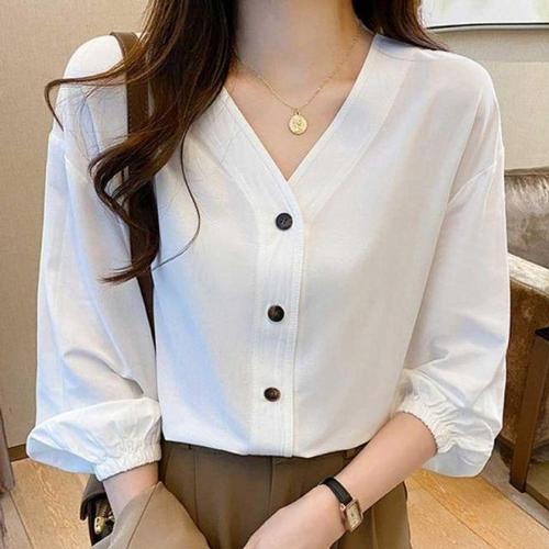 [오너클랜]인기상품 브이넥 코튼 일자핏 노카라 셔츠 블라우스 여름 데일리웨어 [WFLL9O3_260304]