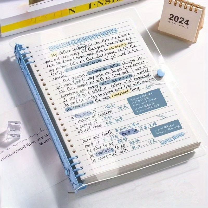 TEMU 120/240/360페이지 A5 투명 소프트 커버 루스리프 노트 (무늬, 분리형 스프링 페이지) | 디자인 - 데일리 사무용품 및 스타일에 적합, 음악 애호가를 위한 완벽한 선물 | 그린, 블루, 퍼플 색상으로 제공