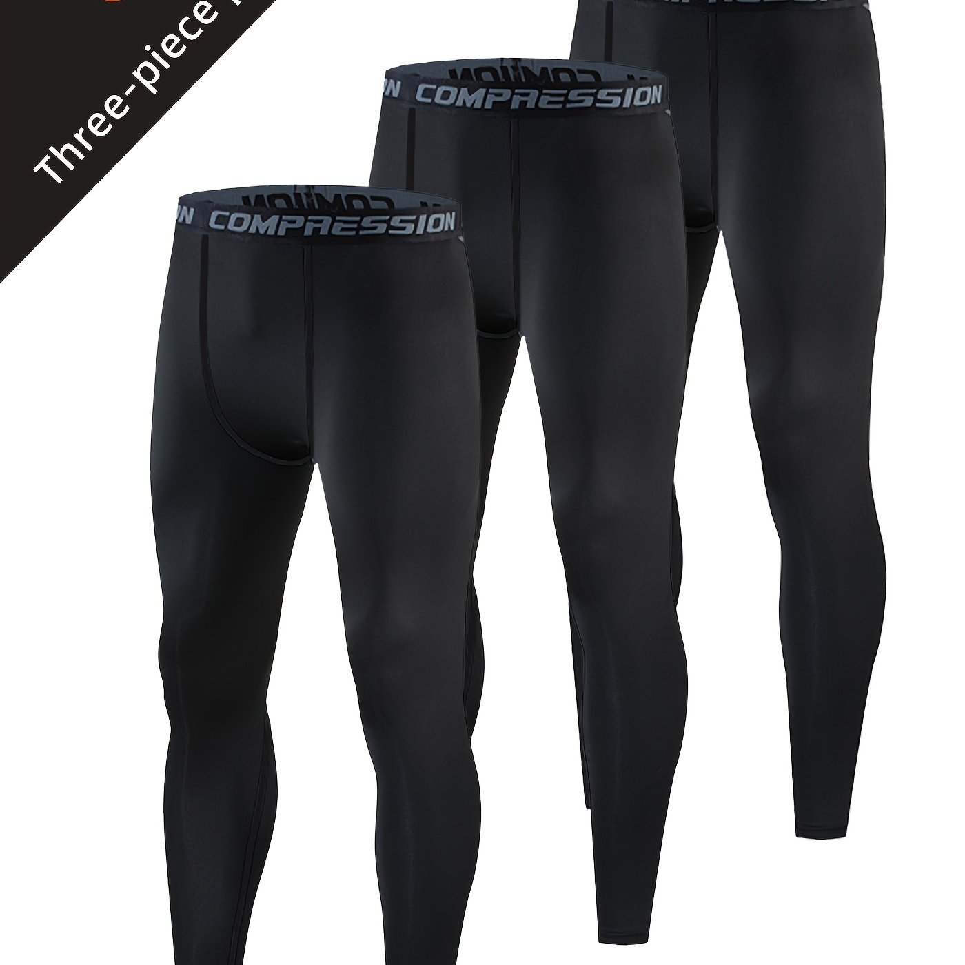 TEMU 3개 남성용 고탄력 압박 레깅스 - 통기성, 신축성 스포츠 타이츠, 러닝, 요가 & 농구 트레이닝용, 단색 블랙