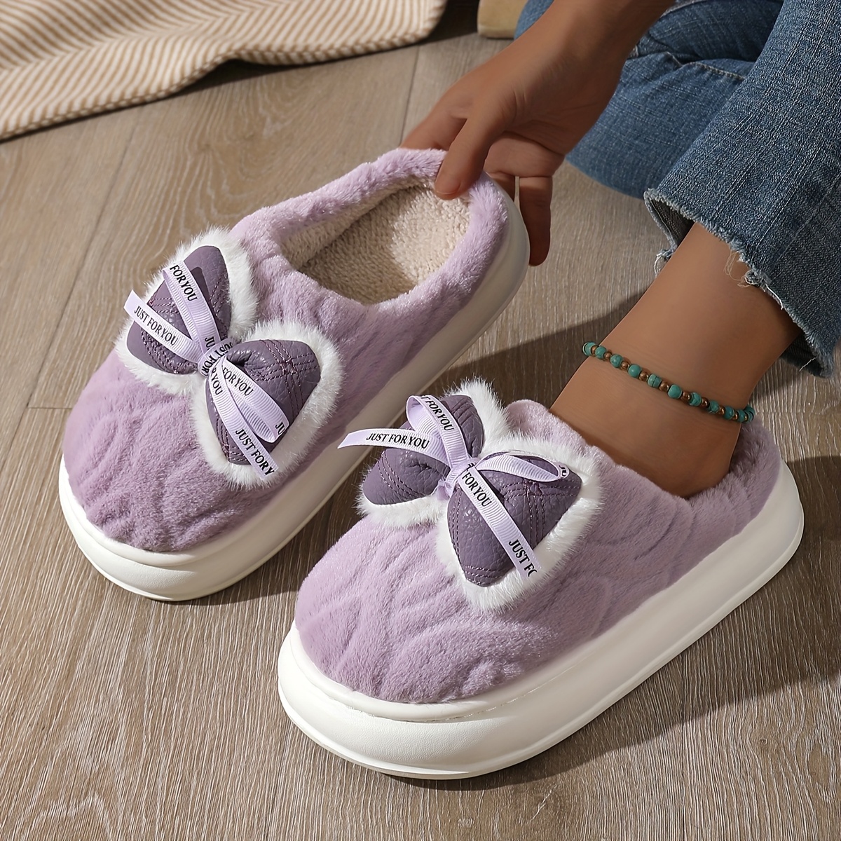 TEMU 여성용 우아한 리본 겨울 슬리퍼 - 부드러운 원단 상단 & 밑창, 추운 바닥에 따뜻한 실내 신발, 크리스마스/선물용 슬립온