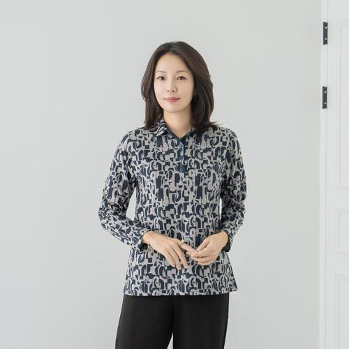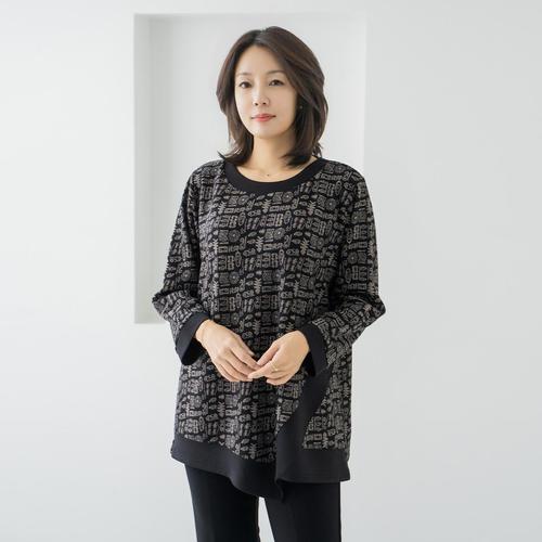 엄마옷 마담4060 기하학카라겉기모티셔츠-QTE2511017-