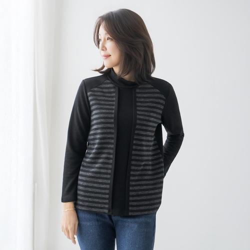 엄마옷 마담4060 단가라레이어드반목티셔츠-QTE2512049-