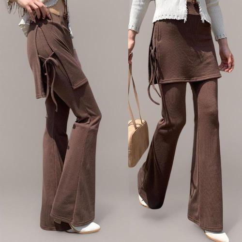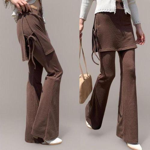 [다잇템]여성 코디 쁘띠 치마 트임 나팔 골지 바지