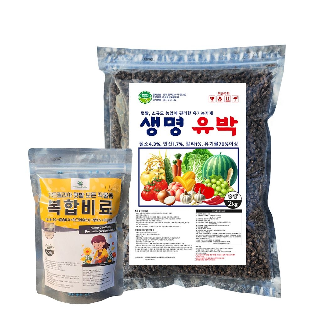 친환경마켓 복합비료 알갱이비료 코팅완효성비료 유박비료 텃밭 밑거름 세트
