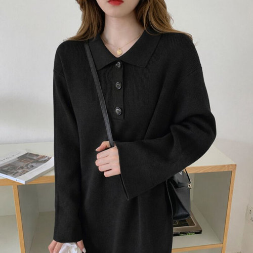 슈팅스타 / 클래식 무드 카라 버튼 니트 롱 원피스