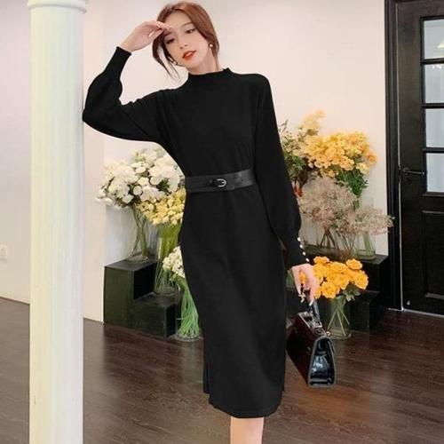 [엄지척]카라 니트 윈터 허리끈 원피스 따뜻 단추 롱원피스 H_19953002_667501