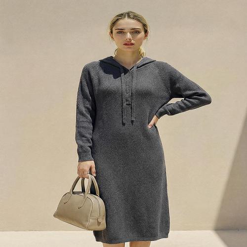 루어스룸 데일리 간절기 여성 루즈핏 브이넥 데일리룩 베이직 빅사이즈 니트 원피스 하객룩 니트원피스