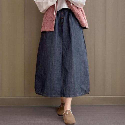 [애슬릿] 니트 스커트 밴딩 A라인 겨울 롱 치마 미시 마담