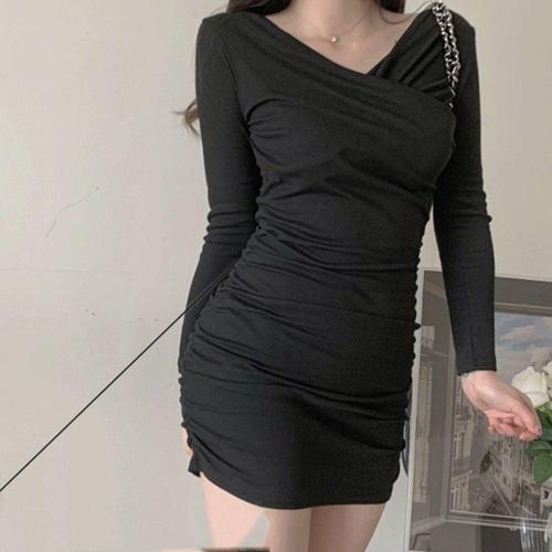 셔링 주름 랩 슬림핏 긴팔 미니원피스 니트 원피스 WFLRZJE