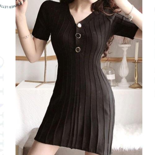 여성 미니원피스 니트 브이넥 단추 반팔 원피스 WFLRZK7