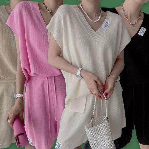 [에이치플러스몰]니트 세트 캐주얼 나시 여름 반바지
