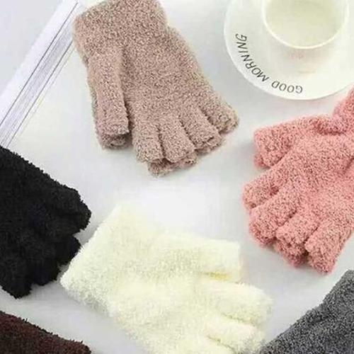 여성용 부드럽고 따뜻한 겨울에 적합한 세련된 반 손가락 장갑 고급스러운 단색 플러시 니트 핑거리스 장갑