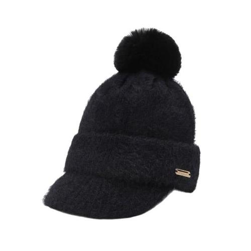 여성 겨울 방울털 이어캡 챙모자 니트비니 귀달이비니