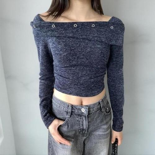 [다잇템]여자 원숄더 단추 긴팔티 슬림핏 슬릿 니트