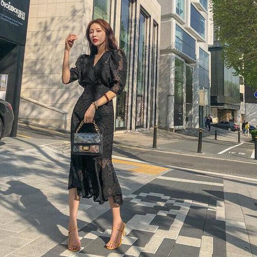 트임 슬림핏 긴팔 니트 플레어치마 투피스 세트 데이트룩 WFKBSOA