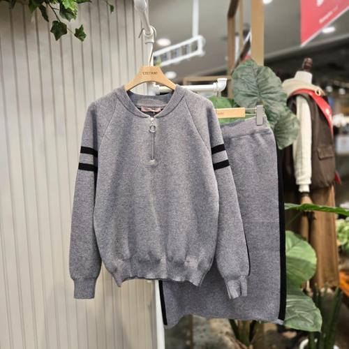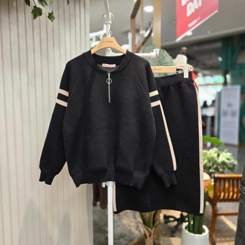 스테파니 HC05 스커트집업반지퍼상하 여성2컬러 니트스커트 니트세트 A24ST