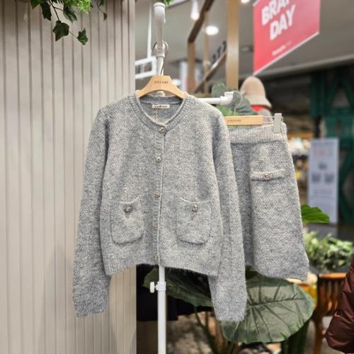 스테파니 HC05 울가디건니트세트스커트 여성2컬러 니트상하세트 미니스커트