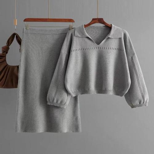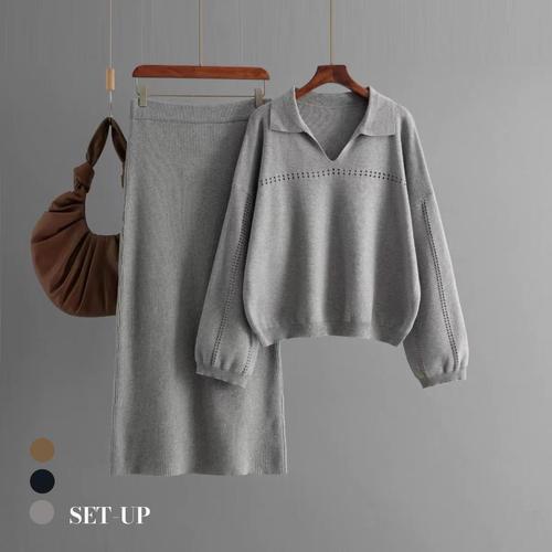 렐라웨어 / 루젤 후드 탑 앤 스커트 니트 투피스 세트 3color_RJY250914