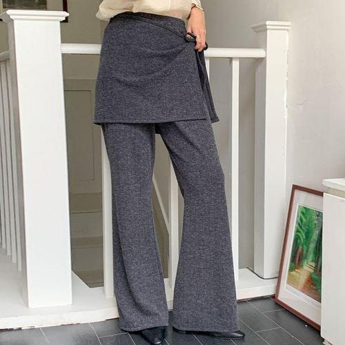 [옷자락]여자 리본 니트 랩치마 레이어드 빅 부츠컷팬츠 세트