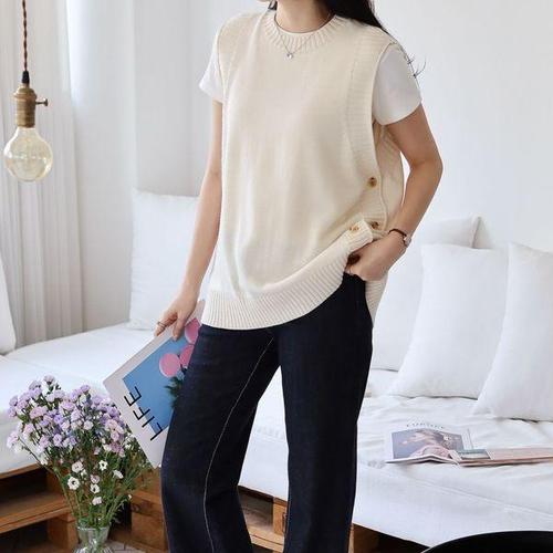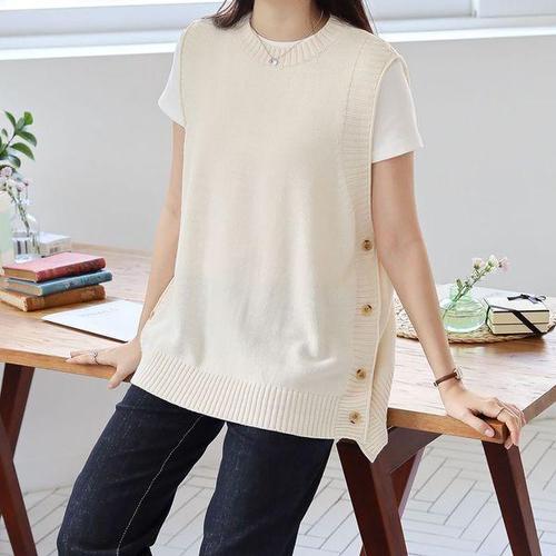 [신상오픈런]여성용 박시핏 라운드넥 니트조끼 옆단추 무지 커버업