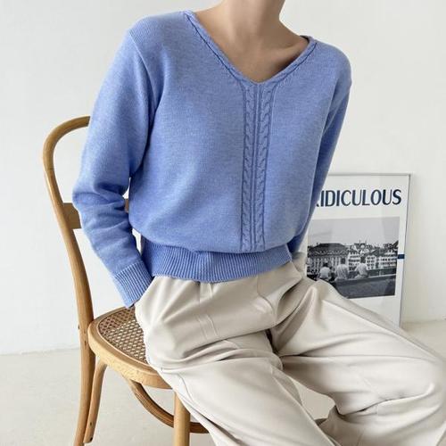 [샵앤]러브꽈Y라인 국산 여성 V넥 레귤러핏 간절기 니트 티셔츠 21DS-WKN-3132-네이비