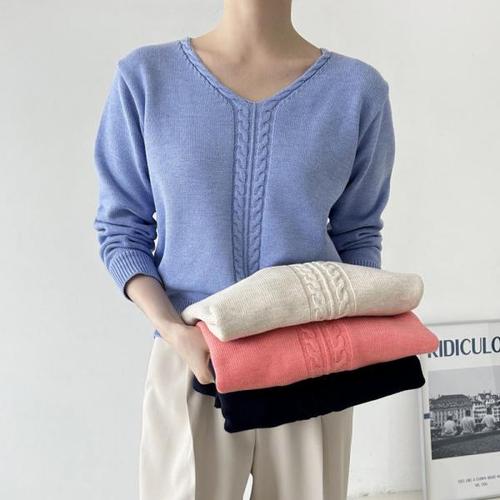 [샵앤]러브꽈Y라인 국산 여성 V넥 레귤러핏 간절기 니트 티셔츠 21DS-WKN-3132-핑크