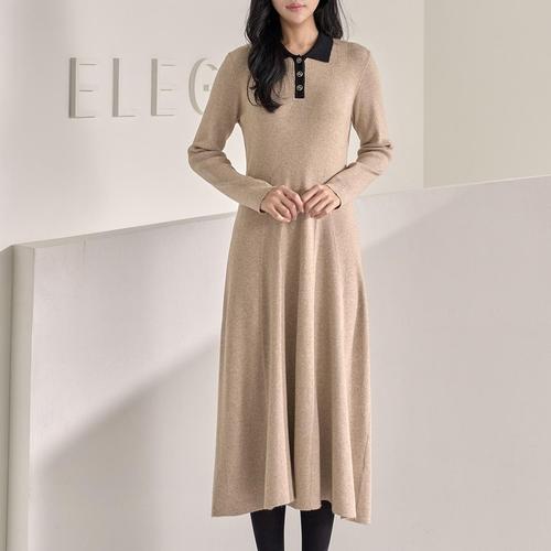 [로즈미] [55~77] 로멜 카라배색 플레어 니트 원피스