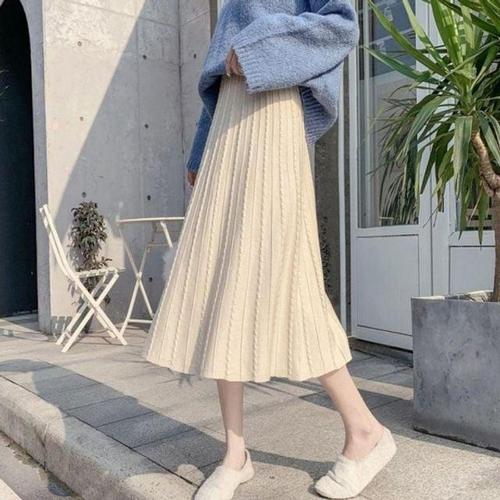 니트웨어 주름 스웨트 플레어라인 치마 시즌 세미플레어 미드 WFLF29A