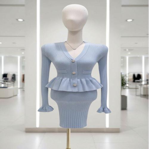 [시슬리]브이넥 플레어 니트 원피스_SAKO01441