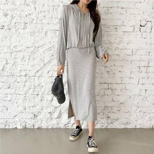 [에이치플러스몰]라루켄 트임 여성 원피스 세트 나시 롱니트 쉬