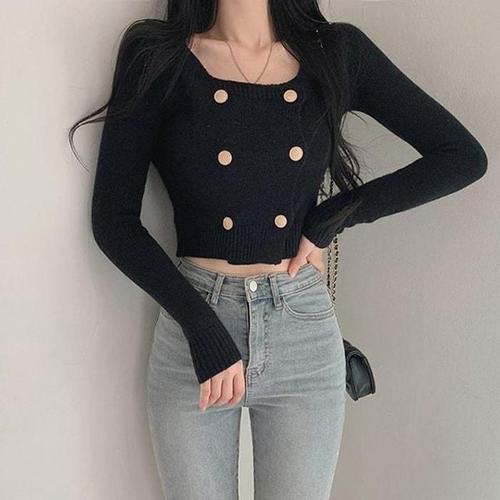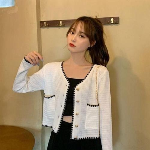 [라일리여성의류] Rly 금장단추 깔끔한 여자 가디건 니트 롱 배색 봄