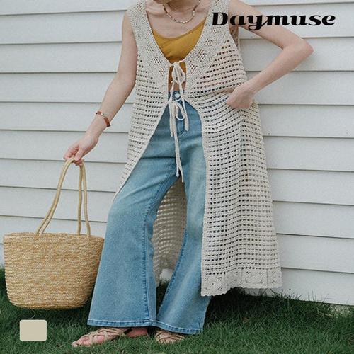 [셀럽하우스]여자 CKCO1474 양옆트임 그물 펀칭 롱조끼 레이어드 니트조끼