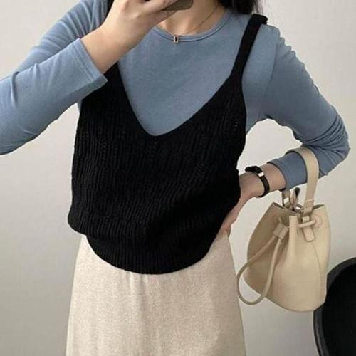 [셀러허브_여성트랜드패션]ONM 니트 뷔스티에 조끼 레이어드 패션 여성 코디 포