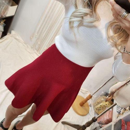 [에이치플러스몰]가을 겨울 와인 니트 플레어 스커트