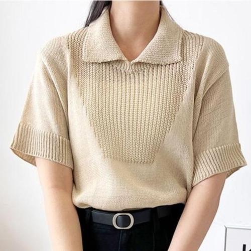 [엄지척]심플 여자 반팔니트 여성 루즈핏 카라 니트 반팔티_19677550_667501
