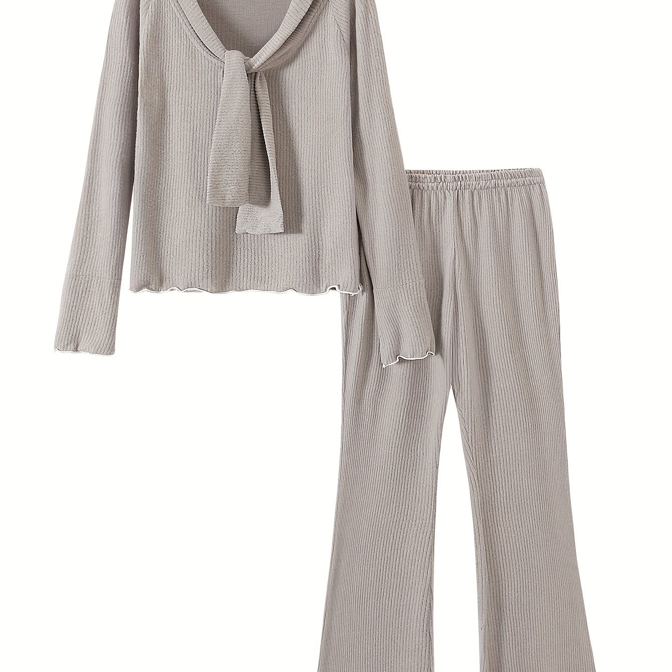 TEMU 여성 봄/가을 스타일리시 긴팔 라운지웨어 세트, 플로잉 리본과 긴 바지 포함