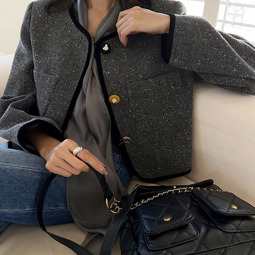 다바럽 고퀄리티 럭셔리 격자 퀼팅 누빔 트위드 자켓